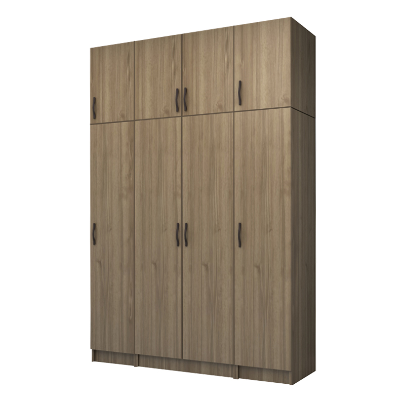 Ντουλάπα ρούχων Vivian Megapap τετράφυλλη με πατάρι χρώμα καρυδί 160×51,8×240εκ.