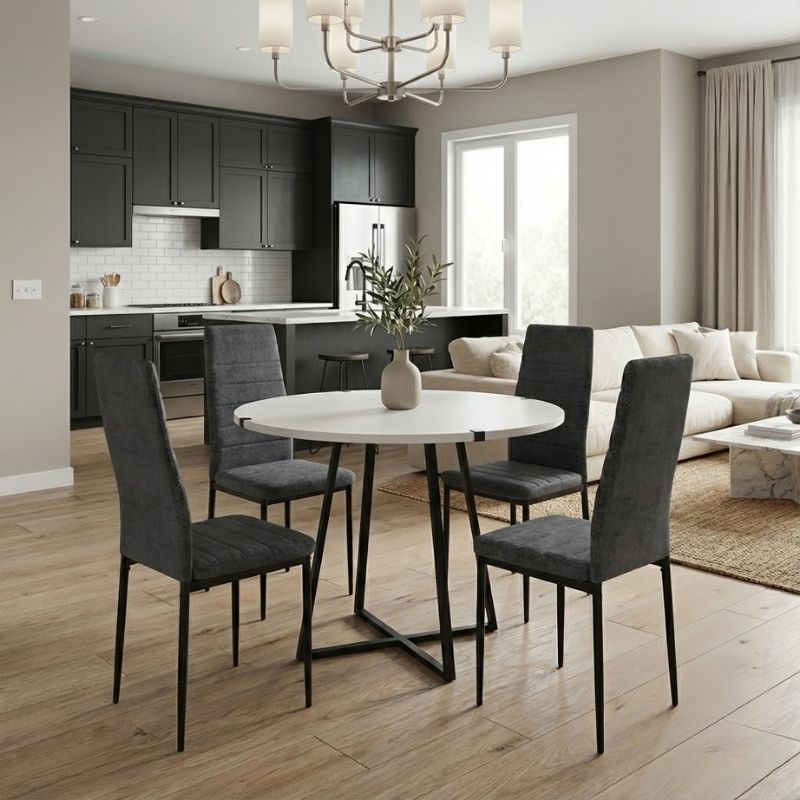 Σετ τραπεζαρία 5τμχ Rubes – Rosa Megapap χρώμα λευκό – γκρι Ø100×78εκ.
