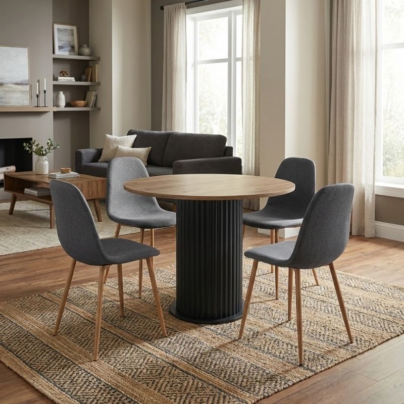 Σετ τραπεζαρία 5τμχ Bohema – Iris Megapap χρώμα μαύρο/sepet oak – γκρι/φυσικό πόδι Ø90×77,7εκ.