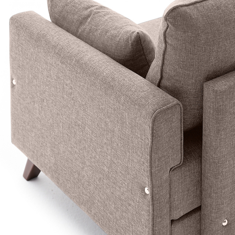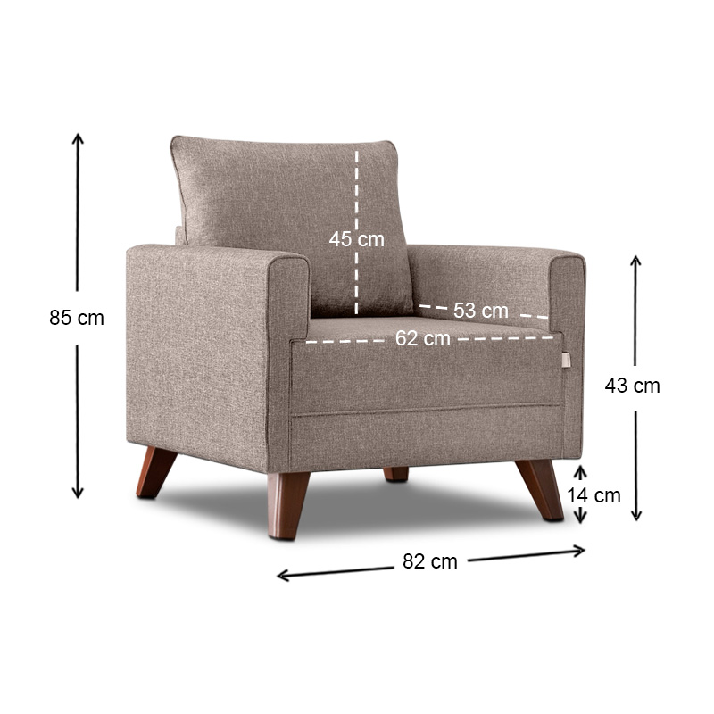 - Φέρει πόδια από πολυπροπυλένιο, ειδικά σχεδιασμένο για καναπέδες, με ξύλινη εμφάνιση σε καρυδί χρώμα.