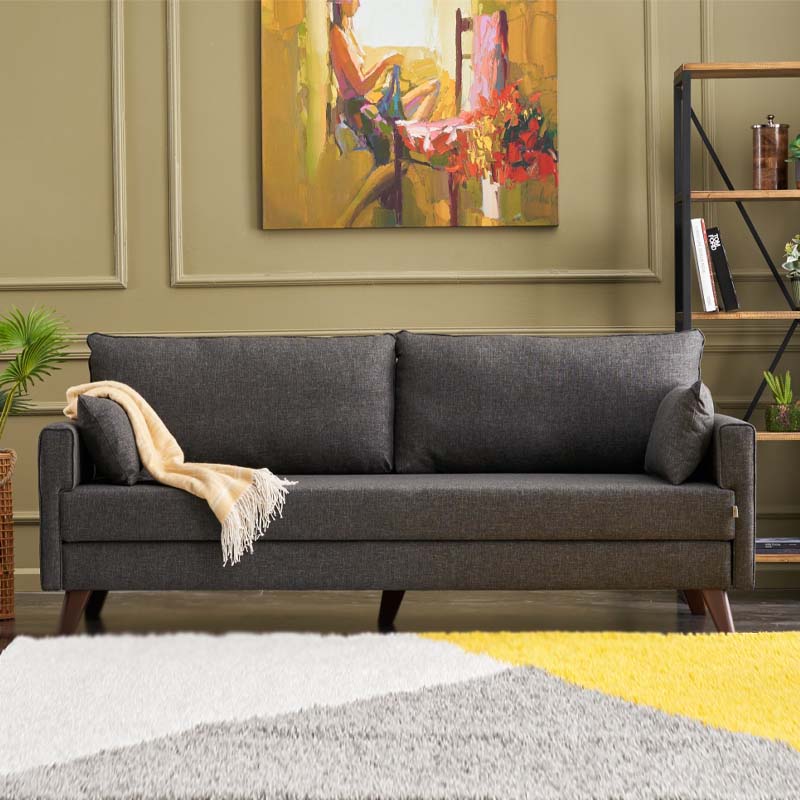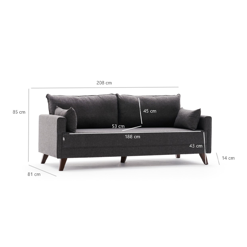 Καναπές – κρεβάτι Bella Megapap τριθέσιος υφασμάτινος χρώμα ανθρακί 208x81x85εκ.