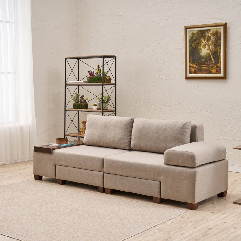 Καναπές – κρεβάτι πολυμορφικός Perenna Megapap τριθέσιος υφασμάτινος χρώμα κρεμ 233x93x83εκ.