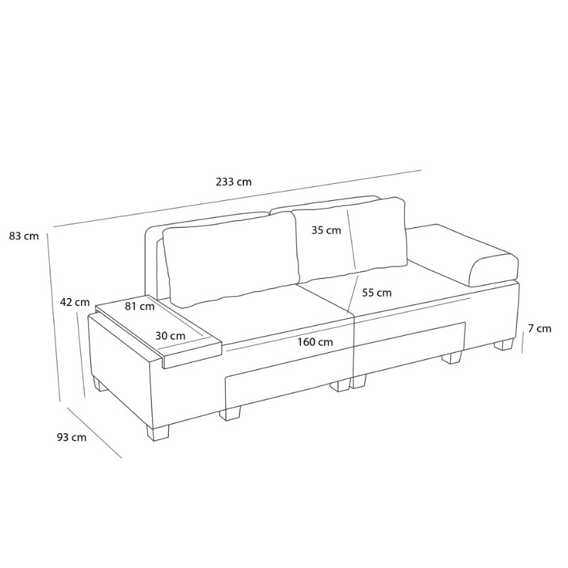 • Διαστάσεις: Μήκος 233 x Βάθος 93 x Ύψος 83 εκ.
