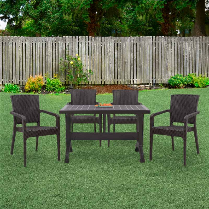 Σετ τραπεζαρία κήπου Callan Megapap 5τμχ πολυπροπυλενίου τραπέζι 140×80 – πολυθρόνα recycled χρώμα καφέ S_GP046-0003,1+GP046-0001,2×4