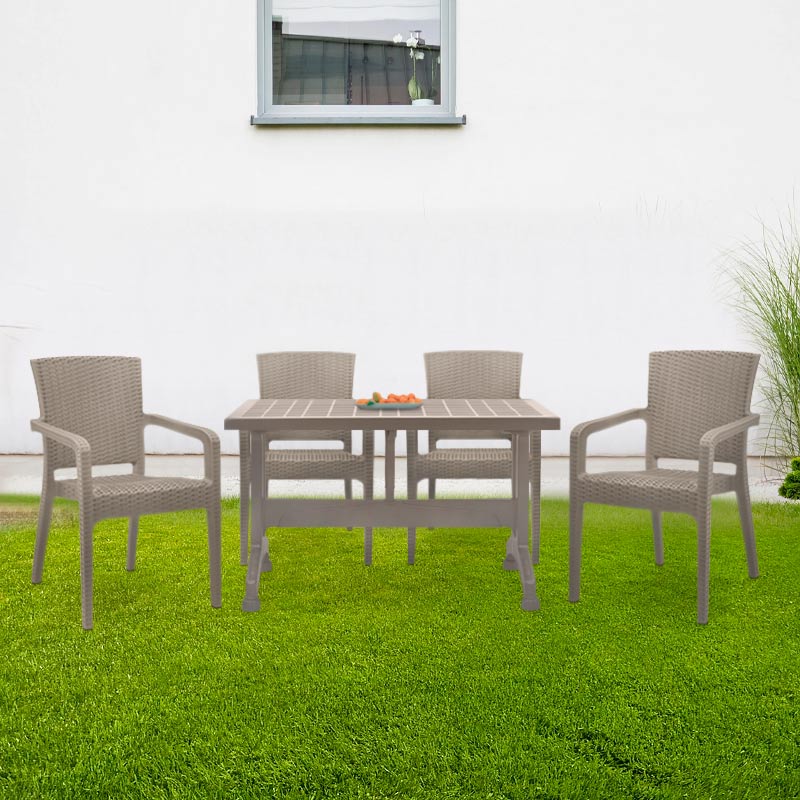 Σετ τραπεζαρία κήπου Callan Megapap 5τμχ πολυπροπυλενίου τραπέζι 140×70 – πολυθρόνα recycled χρώμα cappuccino S_GP046-0003,2+GP046-0001,3×4