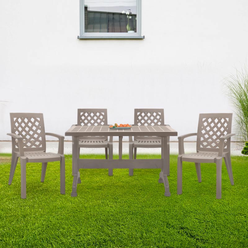 Σετ τραπεζαρία κήπου Callan Megapap 5τμχ πολυπροπυλενίου τραπέζι 140×70 – πολυθρόνα χρώμα cappuccino S_GP046-0003,2+GP046-0004,2×4