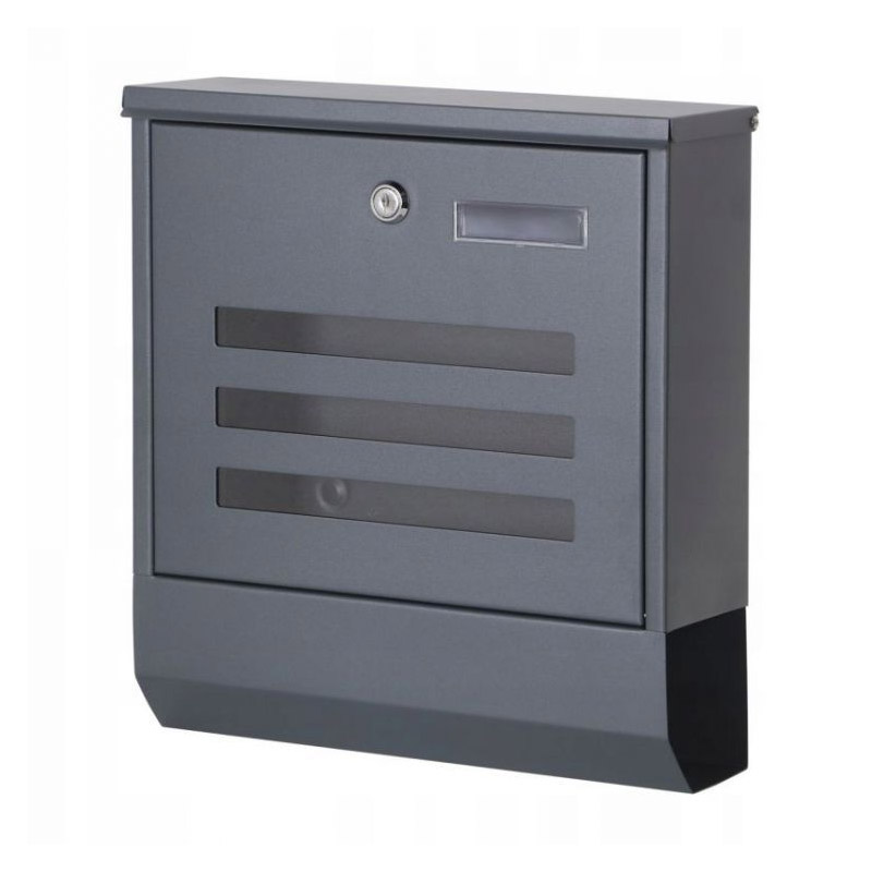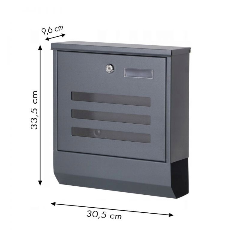 Το γραμματοκιβώτιο, από την εταιρία ModernHome, είναι κατασκευασμένο από γαλβανισμένο ατσάλι, που το καθιστά ανθεκτικό στις καιρικές συνθήκες. Μπορεί να τοποθετηθεί τόσο στον φράχτη όσο και στην πρόσοψη – οι ακίδες στερέωσης περιλαμβάνονται στο σετ. Διαθέτει κλειδαριά και 3 διαφανή παράθυρα για να βλέπετε το εσωτερικό του. Με πινακίδα ονόματος και ξεχωριστή θήκη για εφημερίδα στο κάτω μέρος.