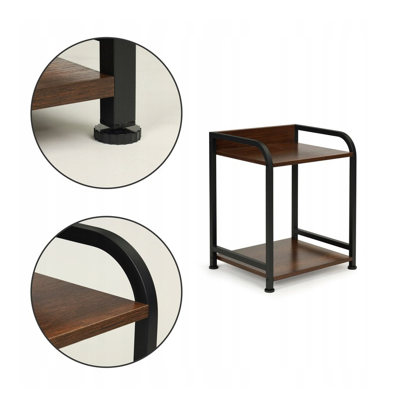 Το κομοδίνο, από την εταιρία ModernHome, έχει συμπαγή μεταλλική κατασκευή. Διαθέτει 2 ράφια από μοριοσανίδα καλυμμένα με καπλαμά.