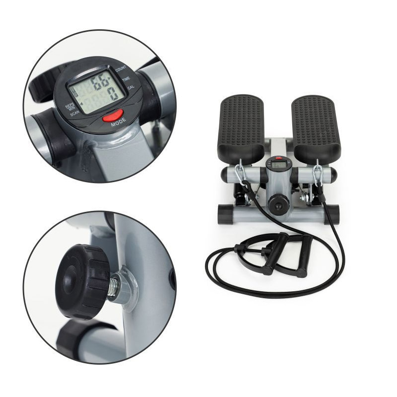 Το stepper, από την εταιρία ModernHome, είναι ιδανικό για προπονήσεις στο σπίτι. Είναι κατασκευασμένο από ισχυρό ατσάλι και πλαστικό υψηλής ποιότητας. Για απόλυτη ασφάλεια και άνεση, τα πεντάλ έχουν καλυφθεί με ειδικό αντιολισθητικό υλικό. Η ένταση της προπόνησης μπορεί να ρυθμιστεί και η όλη πρόοδος να ελέγχεται από την οθόνη LCD με 5 λειτουργίες.