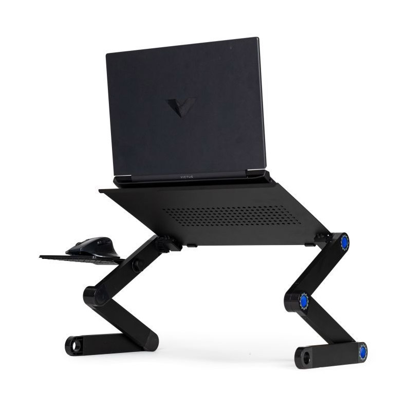 Το τραπεζάκι, από την εταιρεία ModernHome, προορίζεται για laptop έως 17″ και περιλαμβάνει βάση ποντικιού. Σας επιτρέπει να ρυθμίσετε την οθόνη στη σωστή θέση, υποστηρίζοντας την εργασία με πολλαπλές οθόνες. Χαρακτηρίζεται από πλήρη προσαρμογή γωνίας κλίσης και ύψους και η σταθερή κατασκευή αλουμινίου με αντιολισθητικά στοιχεία εξασφαλίζει ασφαλή χρήση. Είναι αναδιπλούμενο, γεγονός που διευκολύνει την αποθήκευση και τη μεταφορά και ο μοντέρνος σχεδιασμός του το κάνει να ταιριάζει τέλεια σε κάθε εσωτερικό χώρο γραφείου.
