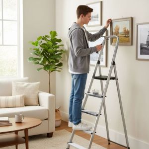 Η στιβαρή σκάλα της μάρκας ModernHome είναι κατασκευασμένη από ανθεκτικό στη διάβρωση αλουμίνιο και έχει σχεδιαστεί για οικιακές, κηπευτικές και επισκευαστικές εργασίες. Με πέντε σκαλοπάτια με αντιολισθητική επιφάνεια και σταθερή, ευρεία πλατφόρμα, προσφέρει ασφάλεια και άνεση εργασίας σε ύψος. Η κατασκευή διαθέτει ενισχυμένους αρμούς και καλύμματα στις συνδέσεις, προσφέροντας αυξημένη αντοχή και ακαμψία στη χρήση. Όταν αναδιπλωθεί, η πλατφόρμα κλειδώνει αυτόματα, παρέχοντας επιπλέον ασφάλεια από τυχαία αναδίπλωση. Τα πόδια της σκάλας τελειώνουν με αντιολισθητικά επίθεματα, που αυξάνουν την πρόσφυση και προστατεύουν το έδαφος από γρατζουνιές. Η συμπτυσσόμενη κατασκευή κάνει τη σκάλα εύκολη στην αποθήκευση και μεταφορά. Το μέγιστο φορτίο ανέρχεται σε 150 kg, καθιστώντας την μια αξιόπιστη υποστήριξη για καθημερινά οικιακά καθήκοντα.