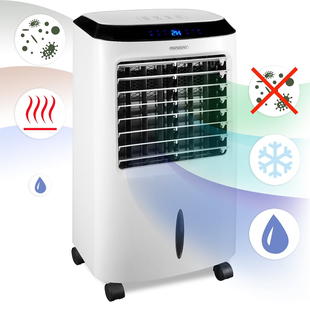 Ανακαλύψτε την απόλυτη άνεση με το κλιματιστικό 4 σε 1 της monzana®. Προσφέρει λειτουργίες που εξασφαλίζουν ευχάριστο κλίμα στο χώρο σας. Όλες οι ρυθμίσεις μπορούν να προσαρμοστούν εύκολα μέσω του πίνακα ελέγχου ή με το τηλεχειριστήριο που περιλαμβάνεται. Η οθόνη LED εμφανίζει τη λειτουργία που έχετε επιλέξει.