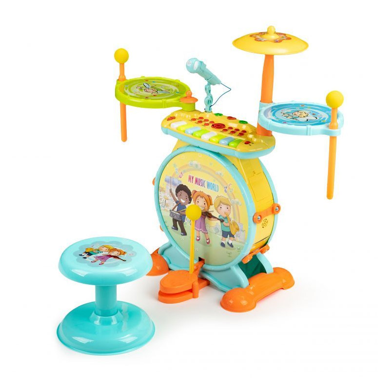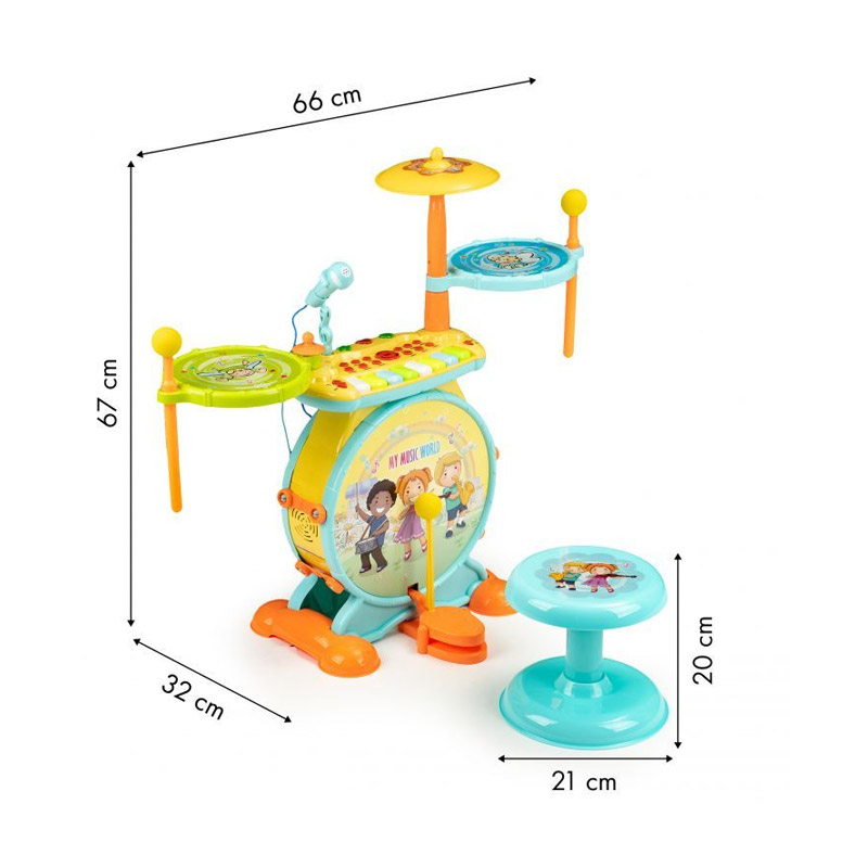 Το σετ, από την εταιρία Multistore, αποτελείται από ντραμς, αρμόνιο και μικρόφωνο καραόκε, χάρη στο οποίο το παιδί σας θα έχει την ευκαιρία να μπει στον κόσμο των μελωδιών, των ήχων και να συνθέσει τα δικά του τραγούδια. Έχει μεγάλο αριθμό λειτουργιών χάρη στις οποίες μπορεί να μιμηθεί τους ήχους άλλων οργάνων. Το παιδί θα μπορεί να παίξει διάφορες προ-προγραμματισμένες μελωδίες. Αφού τα παίξετε, μπορείτε να προσθέσετε το δικό σας ηχητικό κομμάτι χρησιμοποιώντας το αρμόνιο ή τα ντραμς.