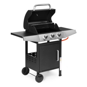 Ανακαλύψτε τη μαγεία της μαγειρικής με το γκριλ υγραερίου που διαθέτει τρεις ανεξάρτητα ρυθμιζόμενους καυστήρες. Αυτό σας επιτρέπει να ετοιμάζετε διάφορα είδη φαγητών ταυτόχρονα. Η μαντεμένια σχάρα με εμαγιέ επικάλυψη προσφέρει μεγάλη επιφάνεια ψησίματος και εξαιρετική διατήρηση θερμότητας, εξασφαλίζοντας ομοιόμορφο μαγείρεμα. Η επάνω σχάρα από ανοξείδωτο χάλυβα είναι ιδανική για τη διατήρηση των έτοιμων πιάτων στην κατάλληλη θερμοκρασία. Ο ενσωματωμένος θερμόμετρος, με εύρος από 60 έως 430°C, σας επιτρέπει να παρακολουθείτε τη θερμοκρασία μέσα στην καμπίνα του γκριλ. Εξοπλισμένο με ρυθμιστή πίεσης, εξασφαλίζει ασφαλή και σταθερή παροχή αερίου. Επίσης διαθέτει ερμάρι για την αποθήκευση της φιάλης αερίου και δίσκο συλλογής λίπους.