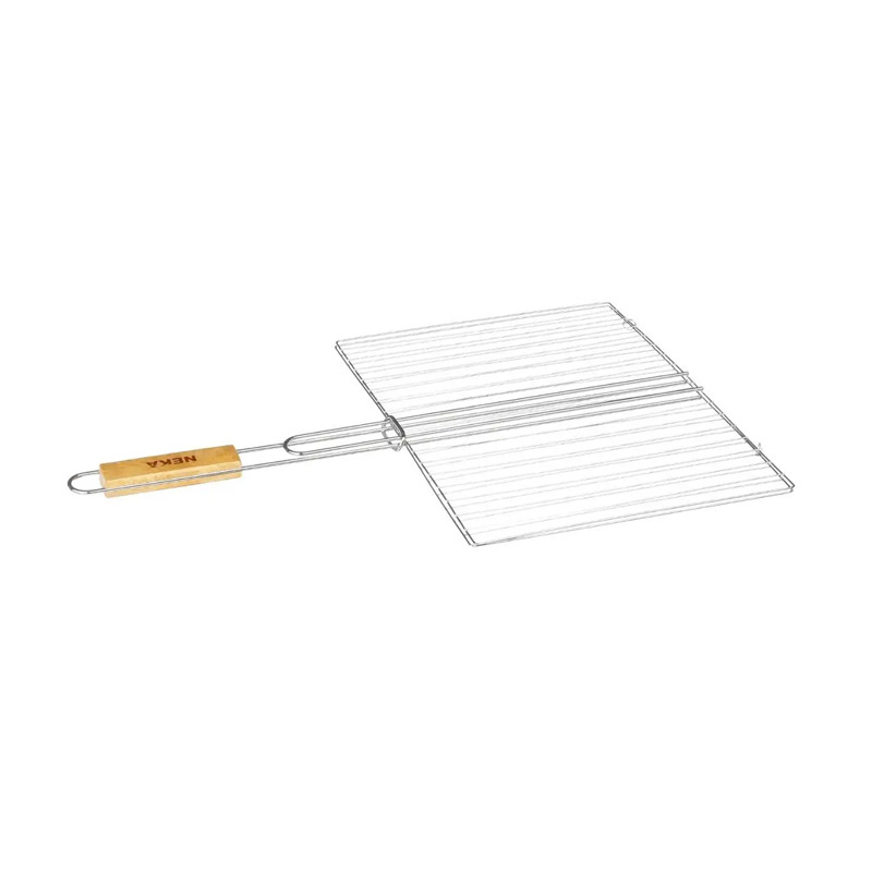 Η διπλή σχάρα ψησίματος, από την εταιρία Neka, είναι κατασκευασμένη από ατσάλι με επίστρωση χρωμίου και διαθέτει ξύλινη λαβή.