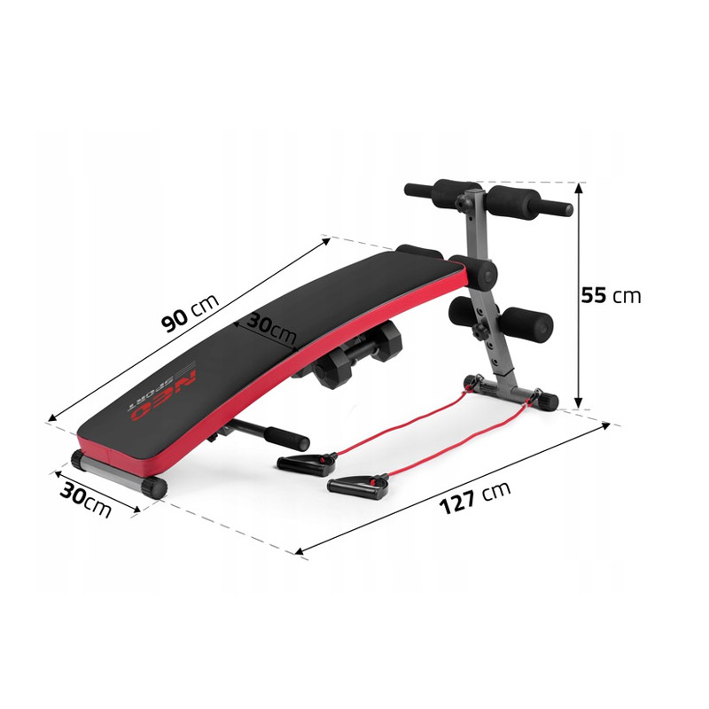 Πάγκος Κοιλιακών και Ασκήσεων Sit Up με 2 Λάστιχα Αντίστασης και 2 Αλτήρες 127 x 30 x 55 cm Neo-Sport NS-211