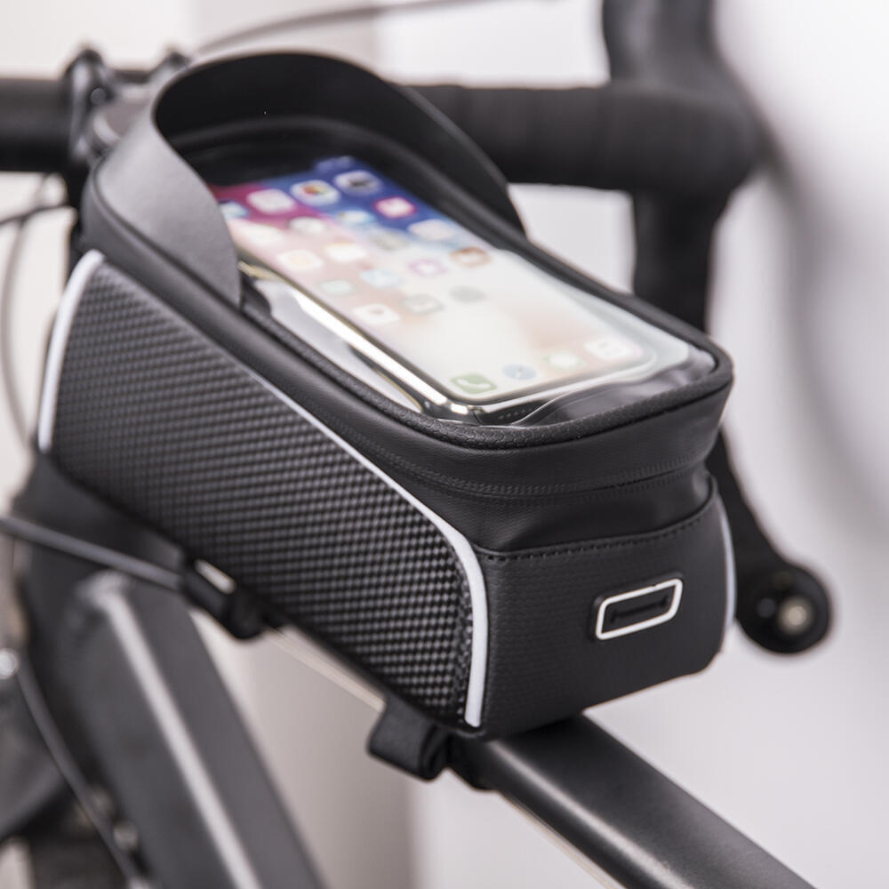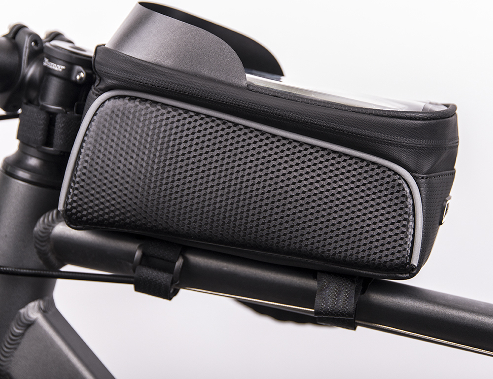 Η αδιάβροχη τσάντα ποδηλάτου σας επιτρέπει να χρησιμοποιείτε το τηλέφωνο ή το GPS σας άνετα κατά την ποδηλασία, ακόμη και σε βροχερό καιρό. Η τοποθέτηση της τσάντας είναι γρήγορη και εύκολη-δεν απαιτούνται εργαλεία. Χάρη στην αγωγιμότητα της οθόνης αφής, μπορείτε να λειτουργείτε την οθόνη χωρίς να βγάζετε το τηλέφωνο από την τσάντα.