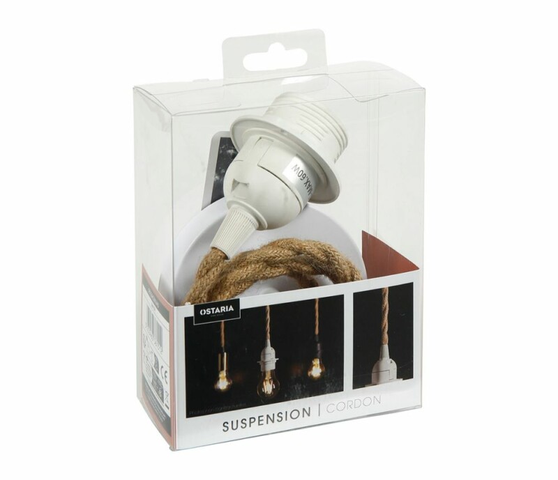 Ostaria Κρεμαστό Φωτιστικό Καλώδιο Φυσικό Σχοινί Μεταλλικό Λευκό E27 60w 220-240v 90cm -36151