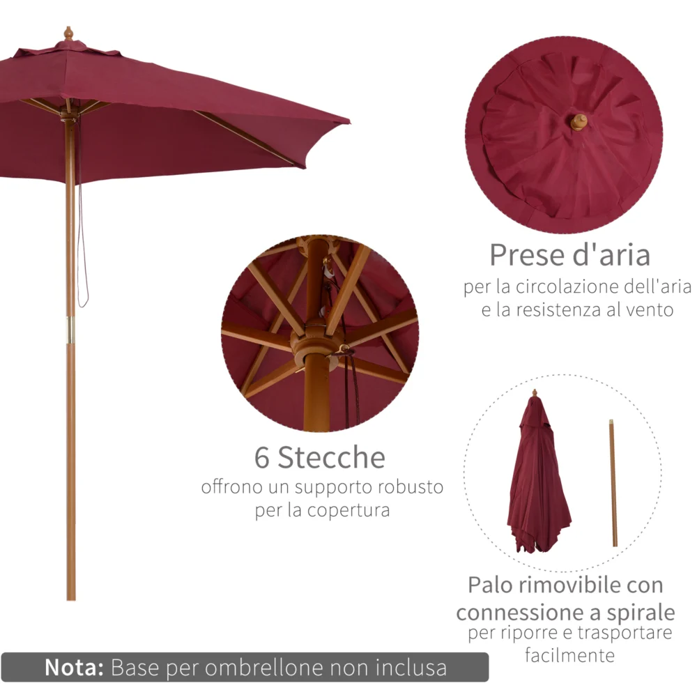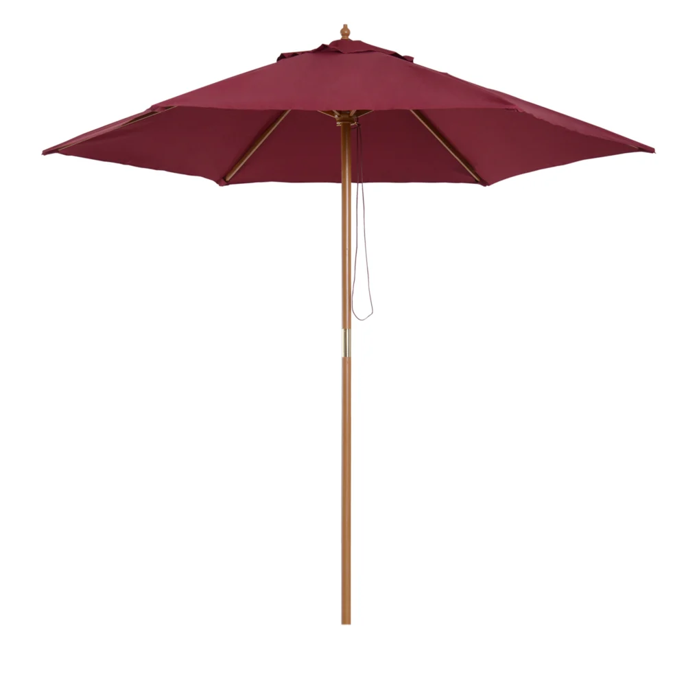 Outsunny Ξύλινη Ομπρέλα, μπορντό, Φ2,5μ 01-0583