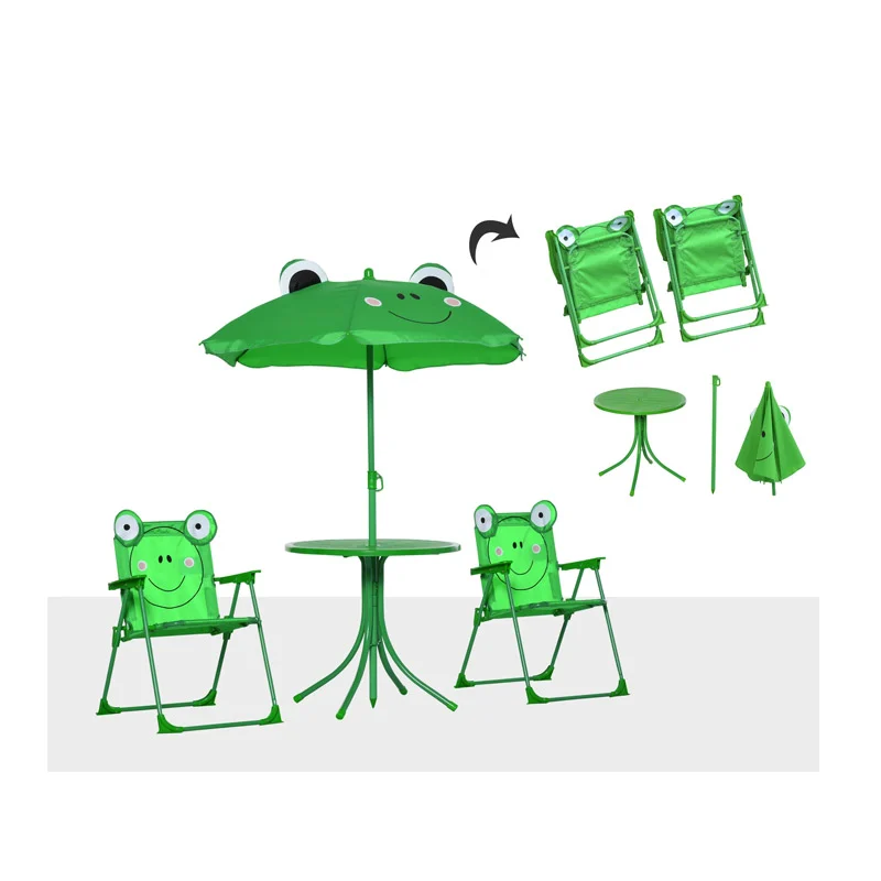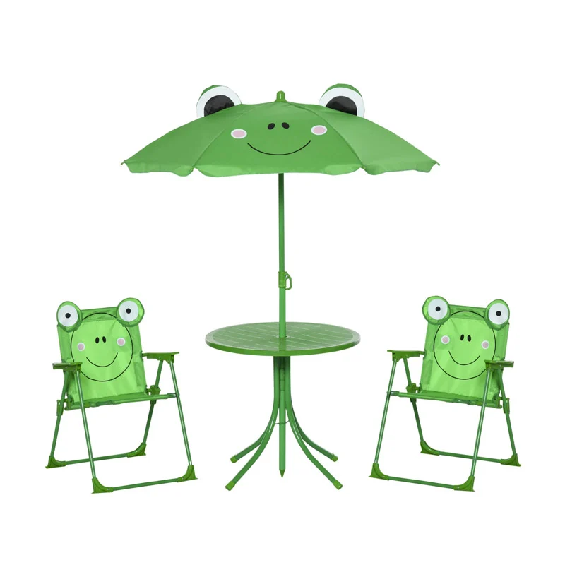 Σετ Παιδικό Σαλόνι Κήπου με Τραπέζι 2 Καρέκλες και Ομπρέλα Βάτραχος 4 τμχ Outsunny 312-024GN