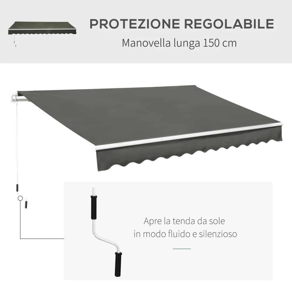 Τέντα ρολού εξωτερικού χώρου με μπράτσα και άνοιγμα μανιβέλας, 350×250 cm, γκρι 840-174V00GY