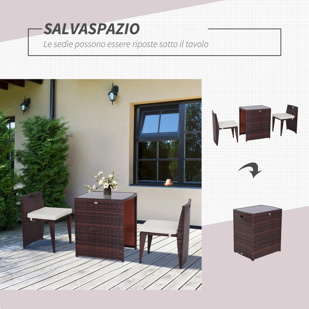 Σετ Έπιπλα Κήπου Outsunny σε Ράταν και Σίδερο 3 τμχ Σετ Τραπεζάκι και Καρέκλα σαλονιού με Μαξιλάρι, Καφέ και Μαύρο 841-139