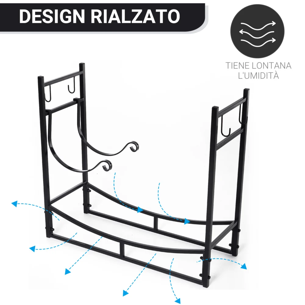 Για να διατηρείτε το ξύλο σας πάντα σε τάξη, επιλέξτε το ξυλόστεγο Outsunny. Με 2 αφαιρούμενα στηρίγματα και 4 γάντζους για αξεσουάρ, αυτή η σιδερένια θήκη κορμών σας προσφέρει έναν πρακτικό χώρο για να τοποθετήσετε κλαδιά και κούτσουρα. Ο ανυψωμένος σχεδιασμός σας επιτρέπει να κρατάτε το u έξω