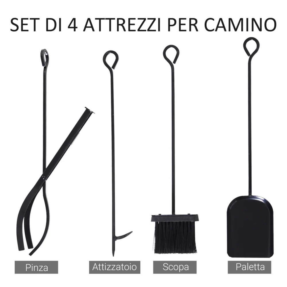 Outsunny μεταλλική θήκη κορμού εσωτερικού και εξωτερικού χώρου με φτυάρι, σκούπα, πόκερ και λαβίδα, μαύρο, 84x33x76 cm 842-129