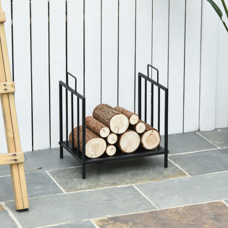 Outsunny Ξυλοθήκη για Τζάκι 15kg max για Εσωτερικό και Εξωτερικό με 2 Λαβές από Μέταλλο 44.5x33x46.5 cm Μαύρο 842-150