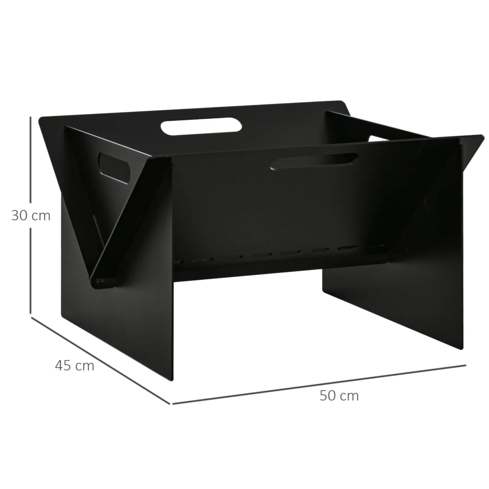 Outsunny Square Steel Garden Fire Pit με Λαβές, 50x45x30cm, Μαύρο 842-213