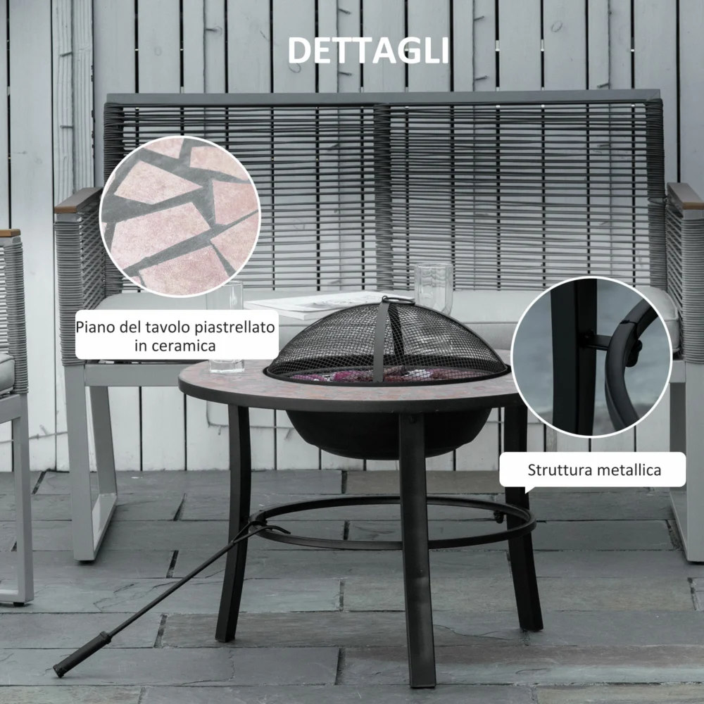 Outsunny Garden Fire Pit με καπάκι στερέωσης σπινθήρων, πόκερ και κεραμική κορυφή, 68x68x45cm, μαύρο 842-215