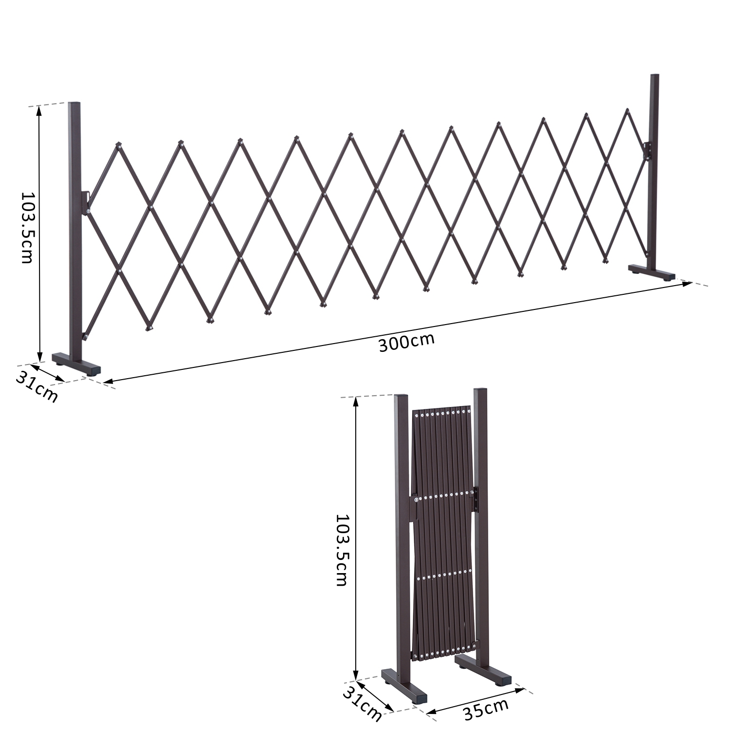 Outsunny Scissor Gate Fence Extendable Scissor Barrier 35-300cm Κήπος Αλουμίνιο καφέ H103,5cm 844-138