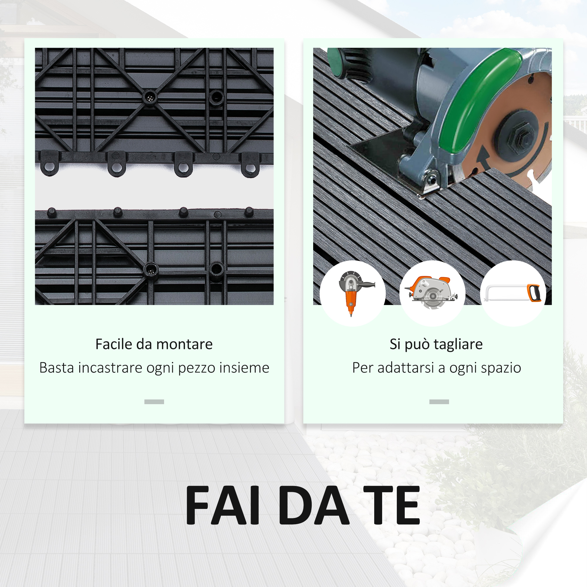 Outsunny Garden Tiles Interlocking Σετ 11 πλακάκια πλακοστρώσεων κήπου εξωτερικού χώρου, γκρι, 30x30x2,2cm 844-214GY