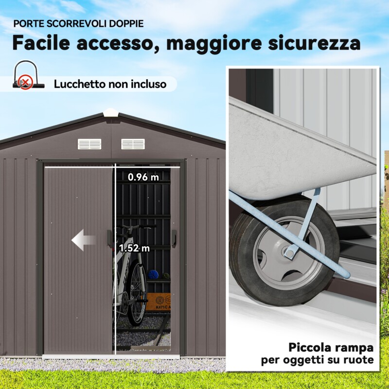 Outsunny Καλύβα Κήπου με 2 Συρόμενες Πόρτες και 4 Αεραγωγούς από Ατσάλι, 322x277x192 cm, Καφέ 845-031V02BN