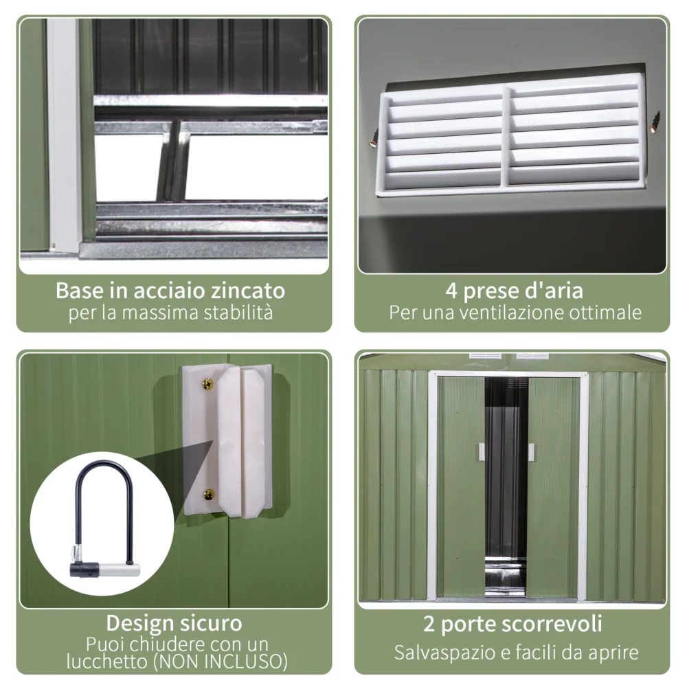 Υπόστεγο κήπου Outsunny με 2 συρόμενες πόρτες και 4 αεραγωγούς από χάλυβα και PP, 277x195x192cm, Ανοιχτό πράσινο 845-031YG