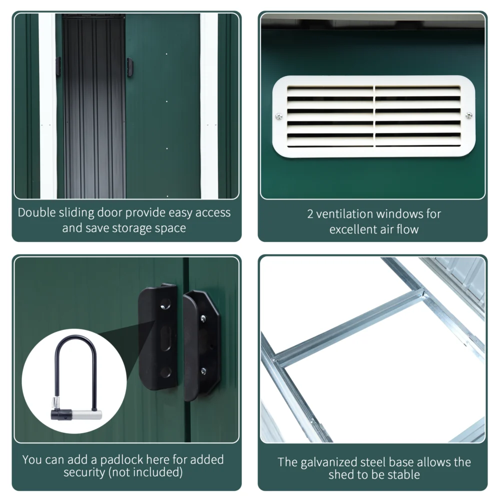 Outsunny Steel Αποθηκευτικό Υπόστεγο, Υπόστεγο Κήπου με 2 Συρόμενες Πόρτες, 255x133x182cm 845-079V01