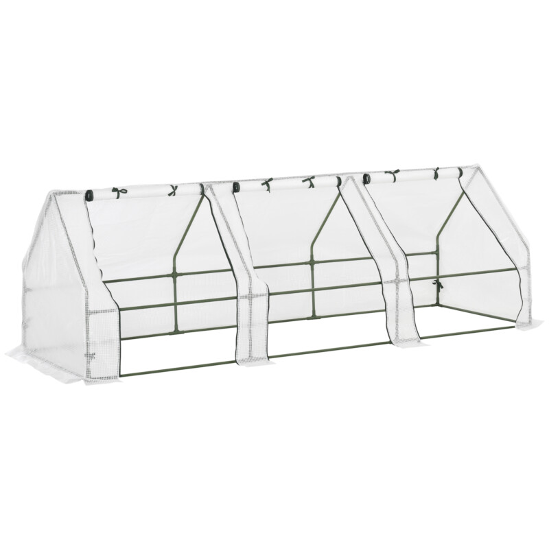 Outsunny PE Tunnel Garden Greenhouse με εκτεταμένες άκρες και αρθρωτές πόρτες, 270x90x90 cm, Λευκό 845-204V02