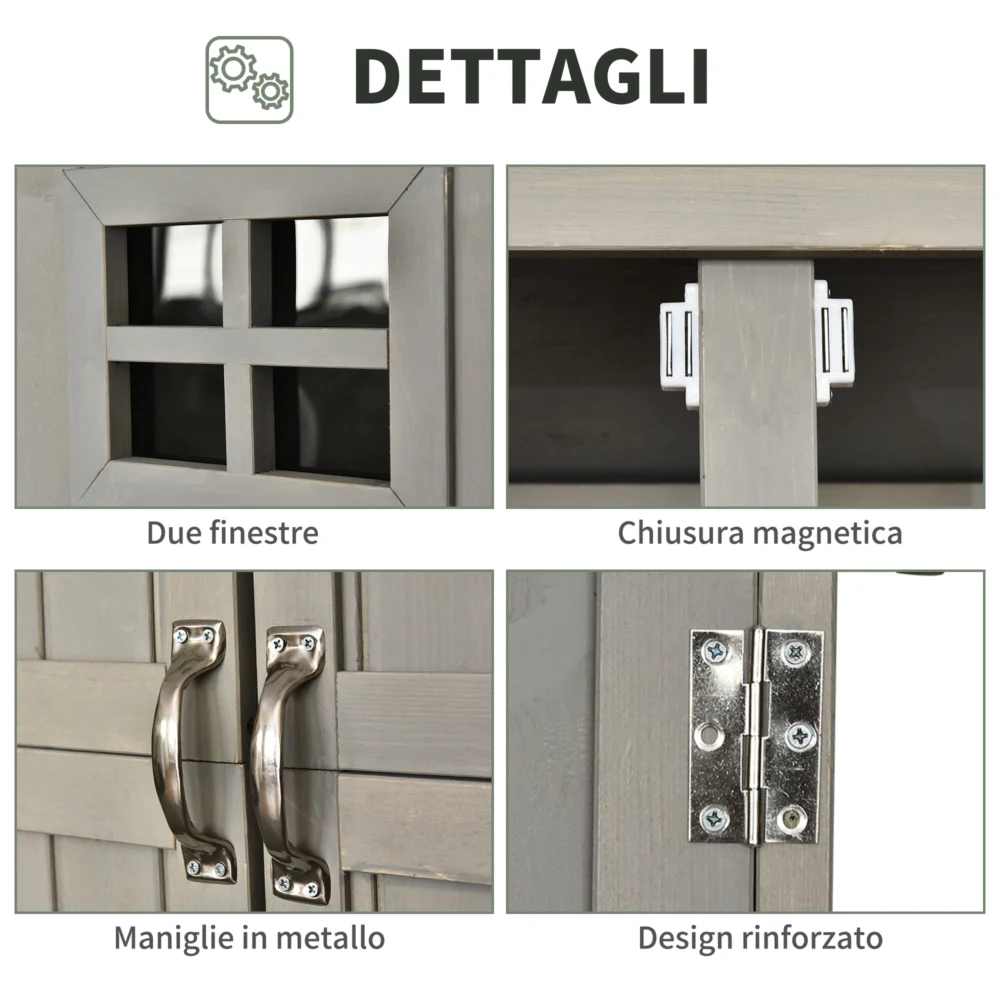 Outsunny Ξύλινο υπόστεγο κήπου με διπλή πόρτα, ράφια και παράθυρα, 127,5x50x164 cm 845-210GY