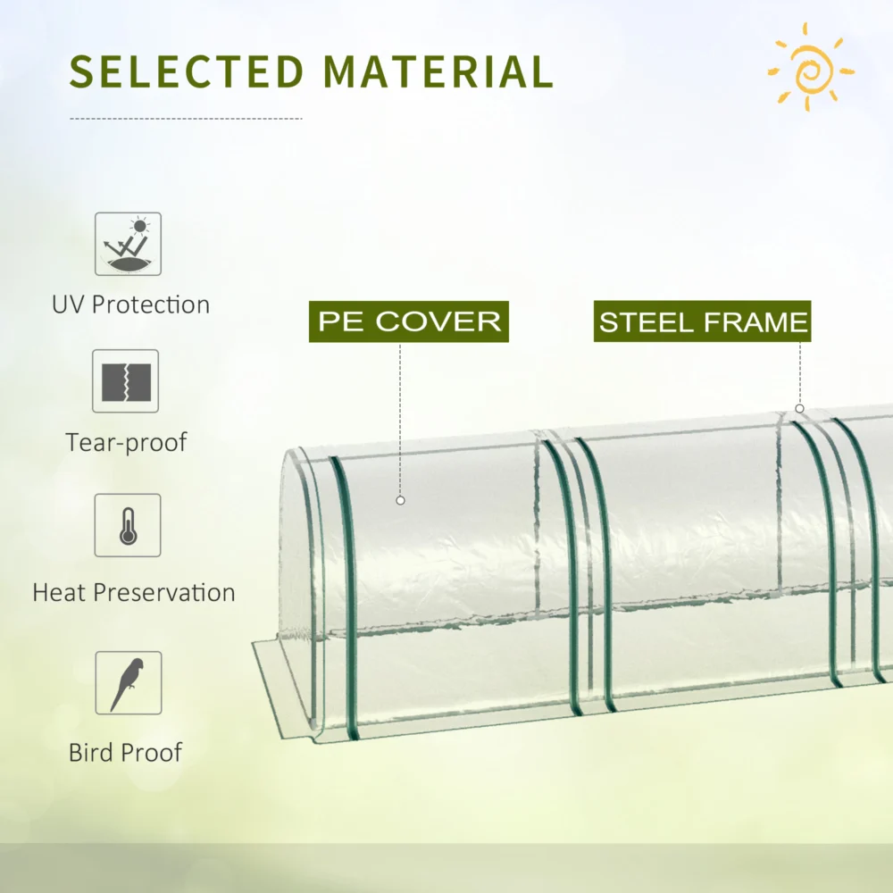 Outsunny Tunnel Θερμοκήπιο από χάλυβα και PVC Αδιάβροχο και Anti UV με 4 Αρθρωτές Πόρτες, 395x100x80 cm 845-234V03CR