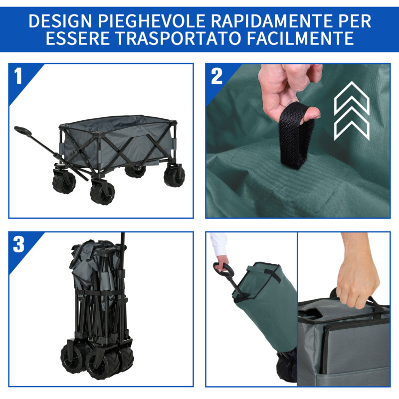 Τρόλεϊ Outsunny Garden μέγιστο φορτίο 70kg με τηλεσκοπική λαβή, από μέταλλο και ύφασμα Oxford, 108×55 cm, γκρι 845-311CG