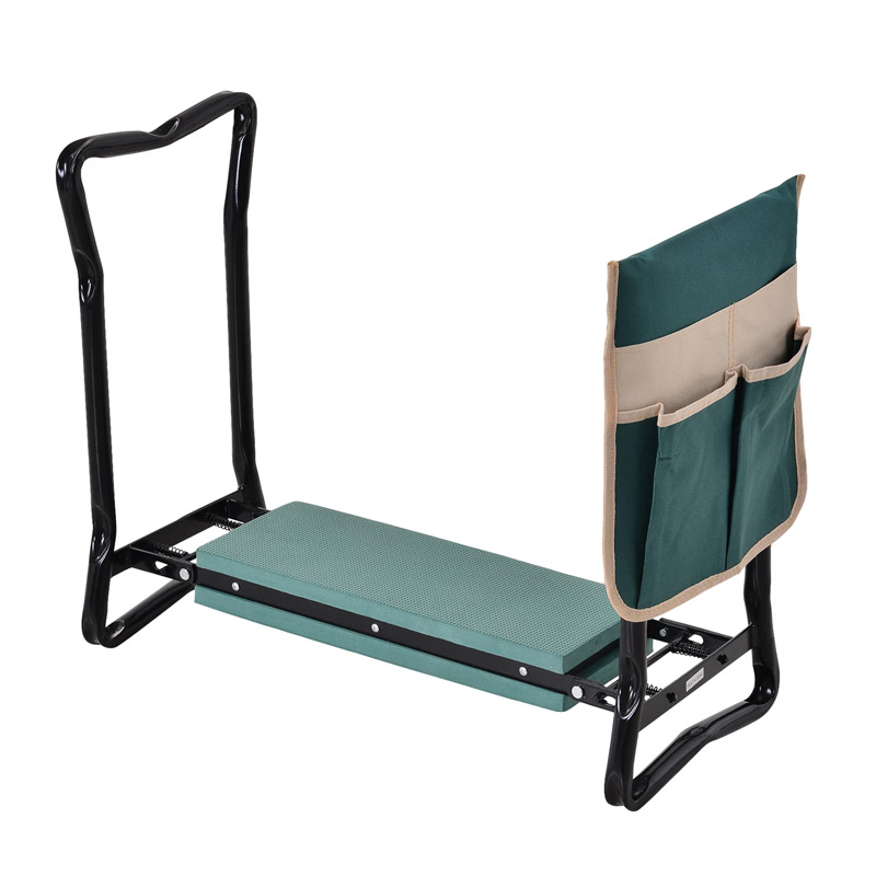 Το κάθισμα κήπου – προστατευτικό γονάτων, από την εταιρία Outsunny, διαθέτει πτυσσόμενο σχεδιασμό και μεταλλικό σκελετό από ατσάλι, για μακροχρόνια χρήση. Εξοπλισμένο με ένα παχύ στρώμα από αφρό στο κάτω μέρος, για να προστατεύετε τα γόνατά σας, όταν εκτελείτε διάφορες εργασίες στον κήπο και με αφαιρούμενη υφασμάτινη τσάντα για τα εργαλεία σας. Επιπλέον, μπορεί να μετατραπεί σε ένα άνετο κάθισμα ξεκούρασης.