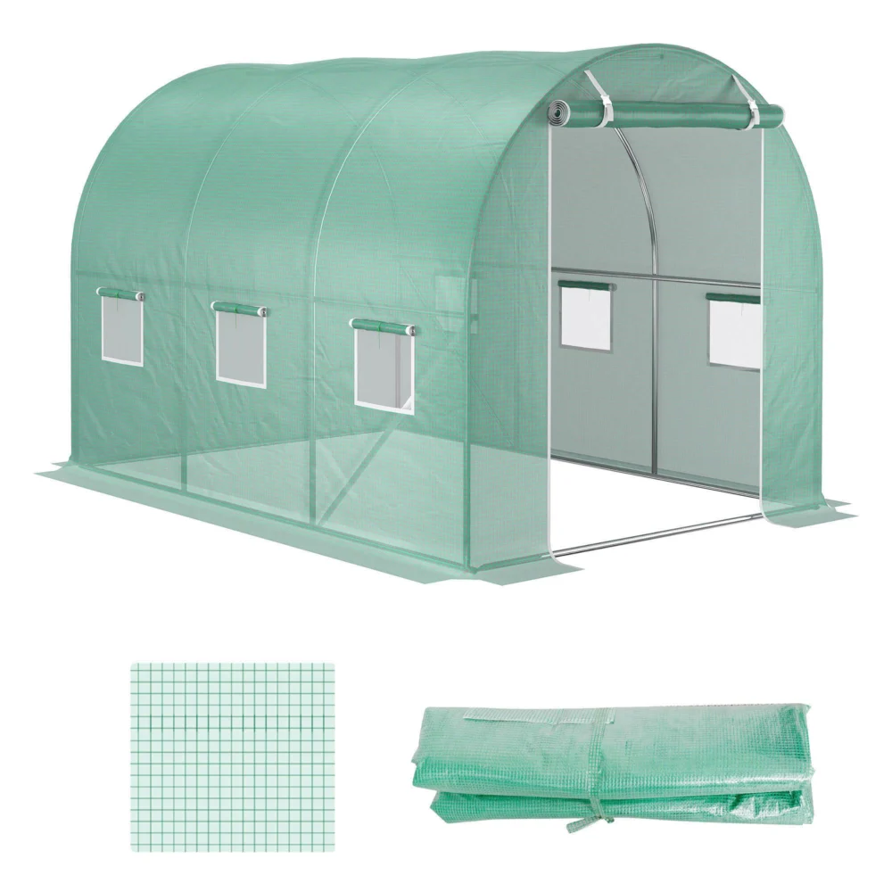 Κάλυμμα θερμοκηπίου PE Outsunny με 6 παράθυρα 3x2x2 m, πράσινο 845-382V03GN