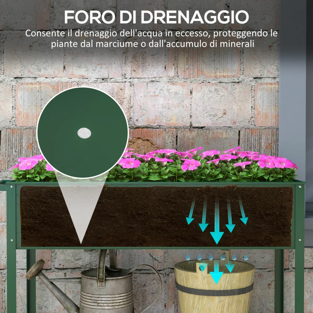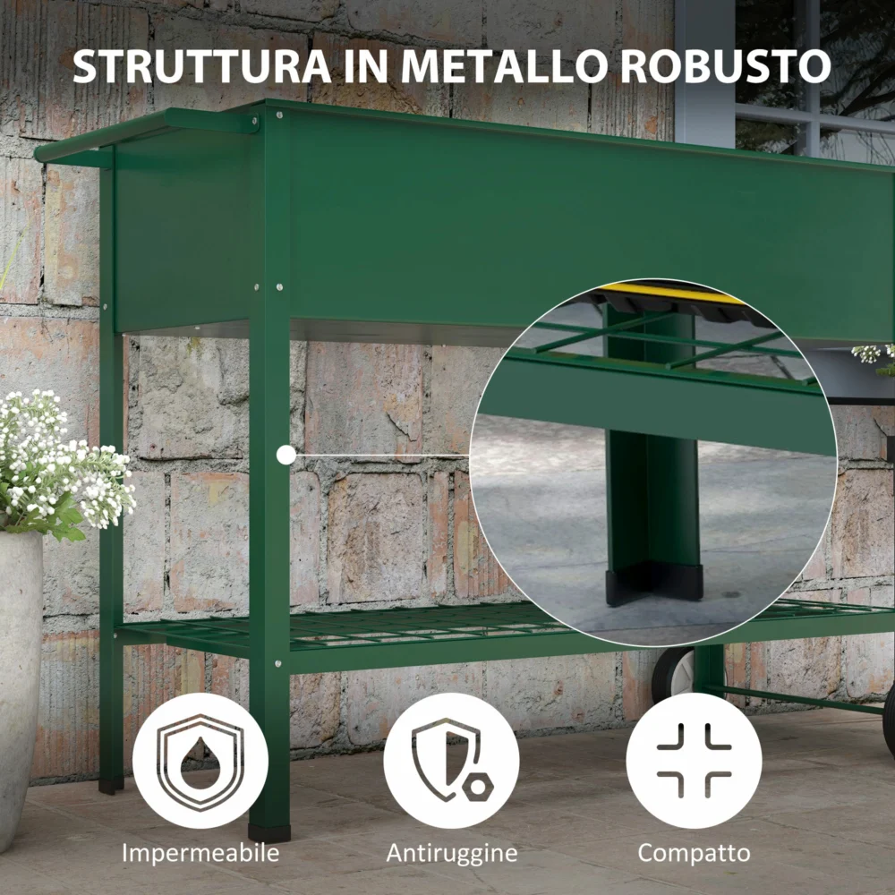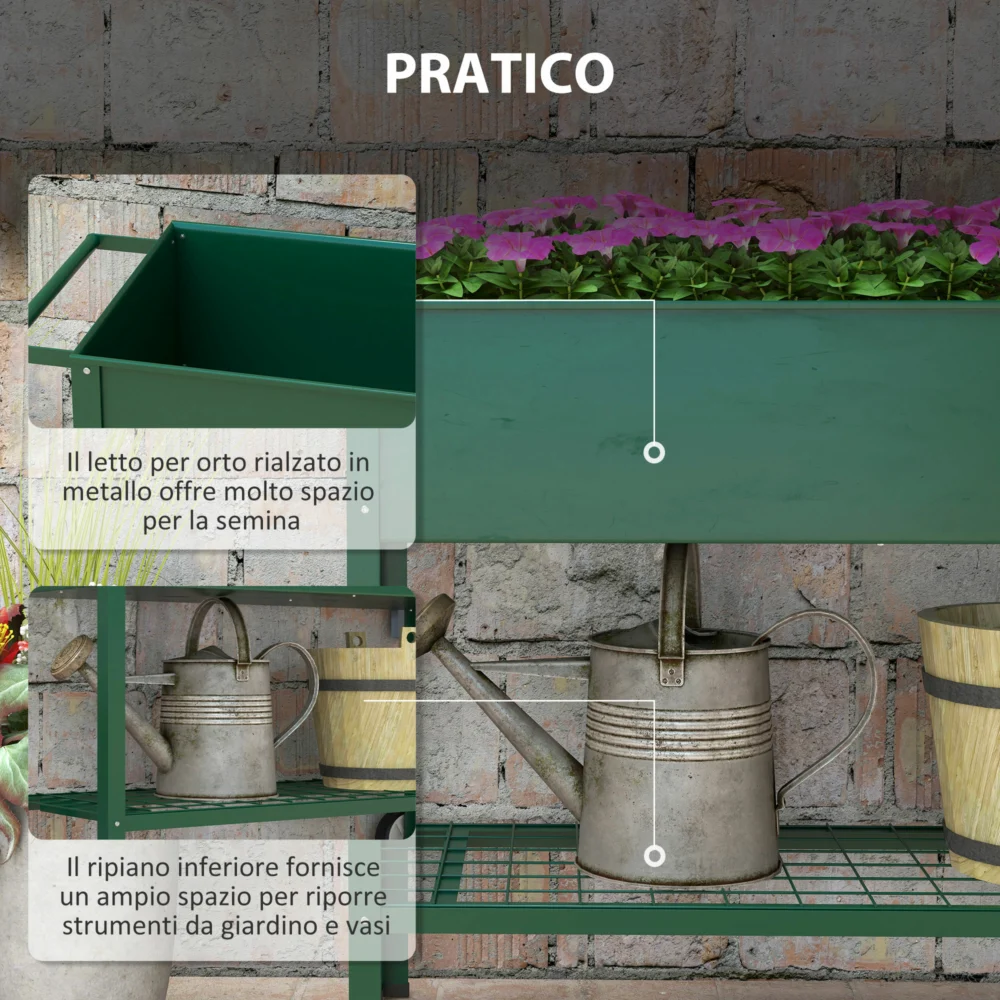 Outsunny φυτευτή εξωτερικού χώρου με βάση εργαλείων κάτω ραφιού, μεταλλικό, 109x44x80 cm, πράσινο 845-384V01GN