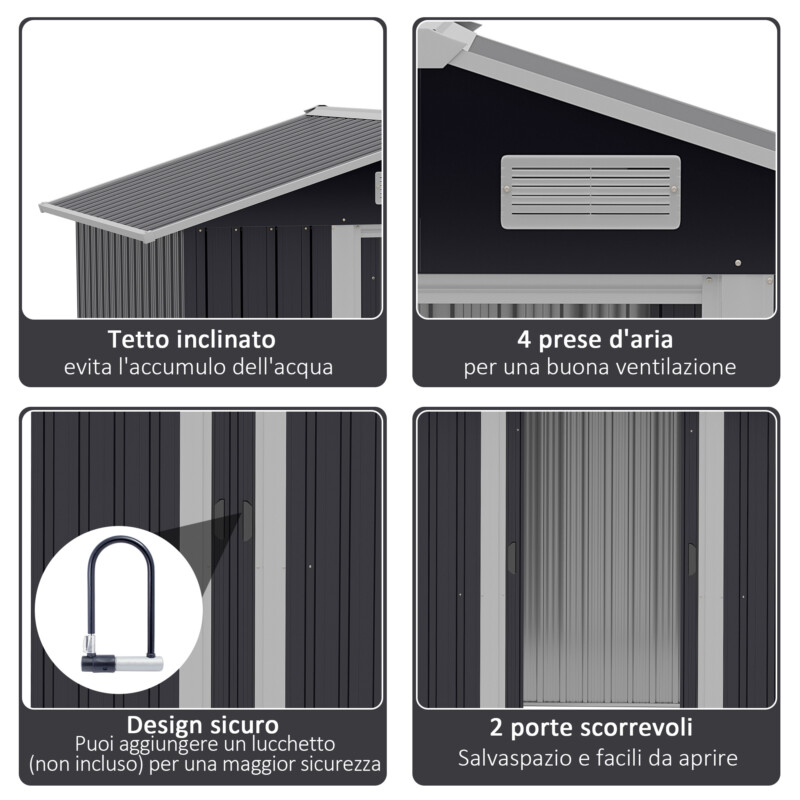 Υπόστεγο Outsunny Garden 2×1,5×1,9m από γαλβανισμένο χάλυβα, διπλή συρόμενη πόρτα και 4 εισαγωγές αέρα 845-536