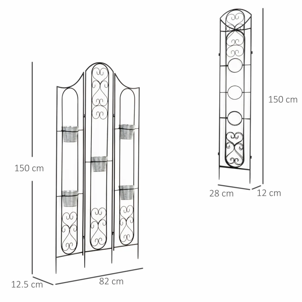 Outsunny Πτυσσόμενη κάθετη θήκη φυτών με 5 μεταλλικές γλάστρες εξωτερικού χώρου, 82×12,5x150cm, Μαύρο 845-571