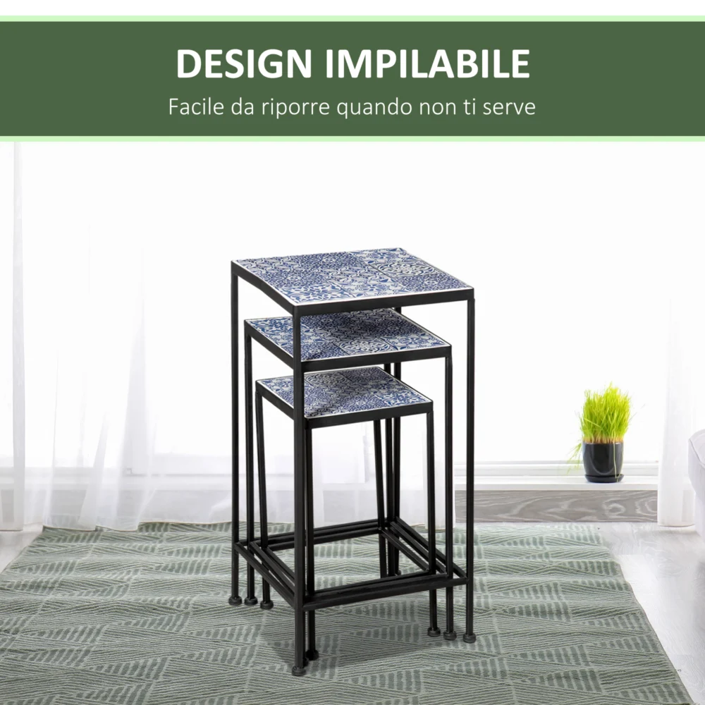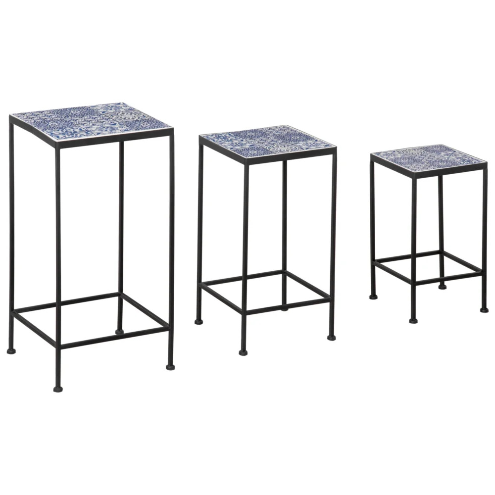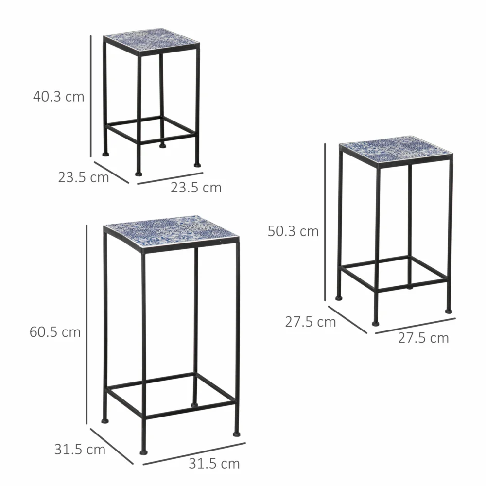 Outsunny Floral Plant Κάτοχος μετάλλου με επιφάνεια κεραμικών πλακιδίων 3 Μονάδα για Κήπο και Μπαλκόνι, Μπλε και Μαύρο 845-574BU