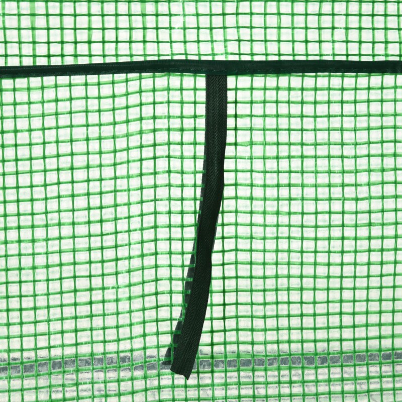 Το κάλυμμα πολυαιθυλενίου, προστατεύει τα φυτά σας από την υπεριώδη ακτινοβολία, και όταν είναι πλήρως κλειστό διατηρεί τα επίπεδα υγρασίας υψηλά μέσα στο θερμοκήπιο, για να ενθαρρύνει την ανάπτυξη τροπικών φυτών και επιτρέπει στο πολύτιμο ηλιακό φως να περάσει. Διαθέτει 2 ράφια για γλάστρες, τα οποία διασφαλίζουν ότι τα φυτά σας έχουν χώρο να αναπνέουν και να μεγαλώνουν υγιή. Η μεγάλη roll up πόρτα με φερμουάρ επιτρέπει την εύκολη πρόσβαση στην εσωτερική περιοχή του θερμοκηπίου για εύκολο χειρισμό και καλύτερη κυκλοφορία του αέρα.