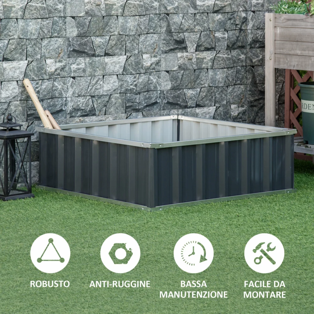 Υπερυψωμένο κρεβάτι κήπου Outsunny από ατσάλι, ανοιχτό κάτω μέρος και συναρμολόγηση χωρίς εργαλεία, 90x90x30 cm 845-662CG