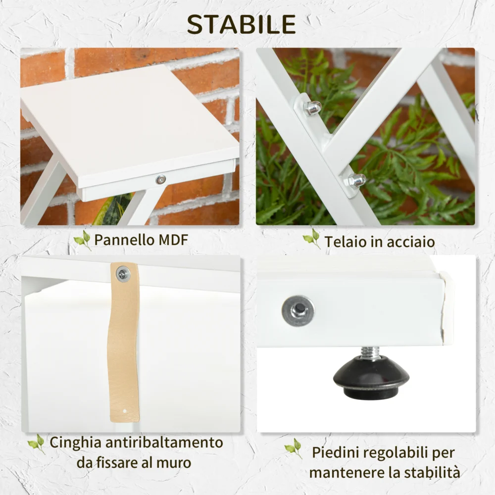 Outsunny 4-Tier Plant Pot Ladder for Indoor and Outdoor MDF and Steel, 50,5x24x81 cm, Λευκό 845-756V00WT
