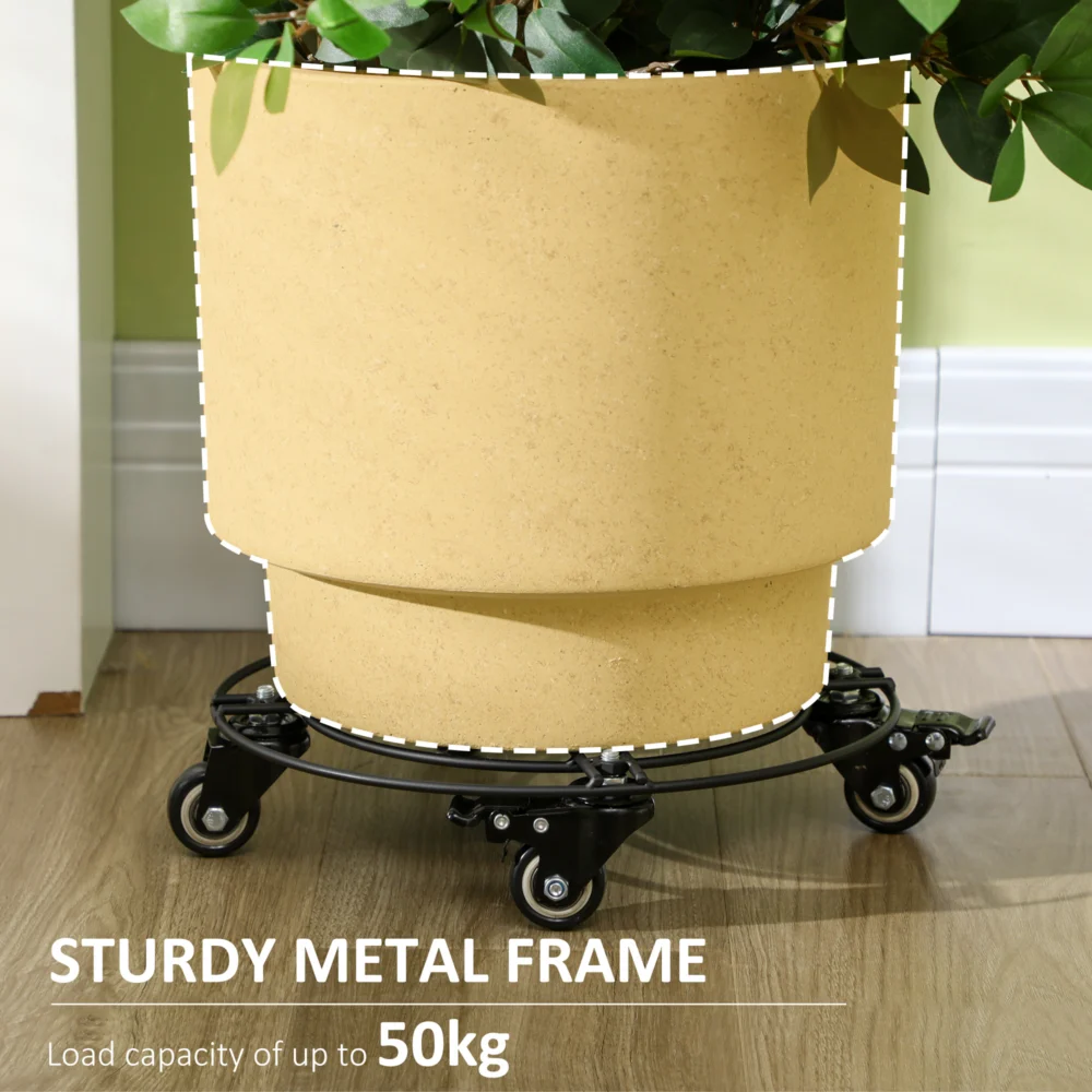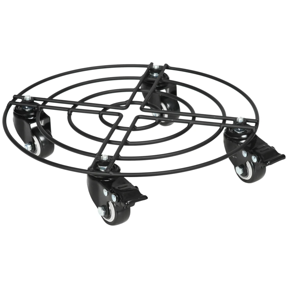 Τρόλεϊ Outsunny με μεταλλικούς τροχούς Ø30cm με περιστρεφόμενους τροχούς και φρένο, μαύρο 845-880V00BK